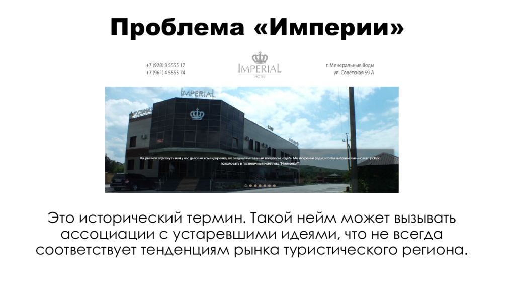 Это исторический термин. Такой нейм может вызывать ассоциации с устаревшими идеями, что не всегда соответствует тенденциям рынка туристического региона.