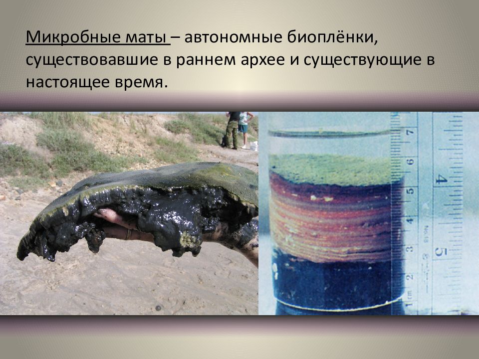 Микробные маты – автономные биоплёнки, существовавшие в раннем архее и существующие в настоящее время.