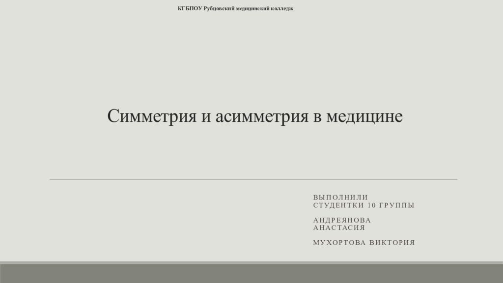 Первый слайд презентации: Симметрия и асимметрия в медицине