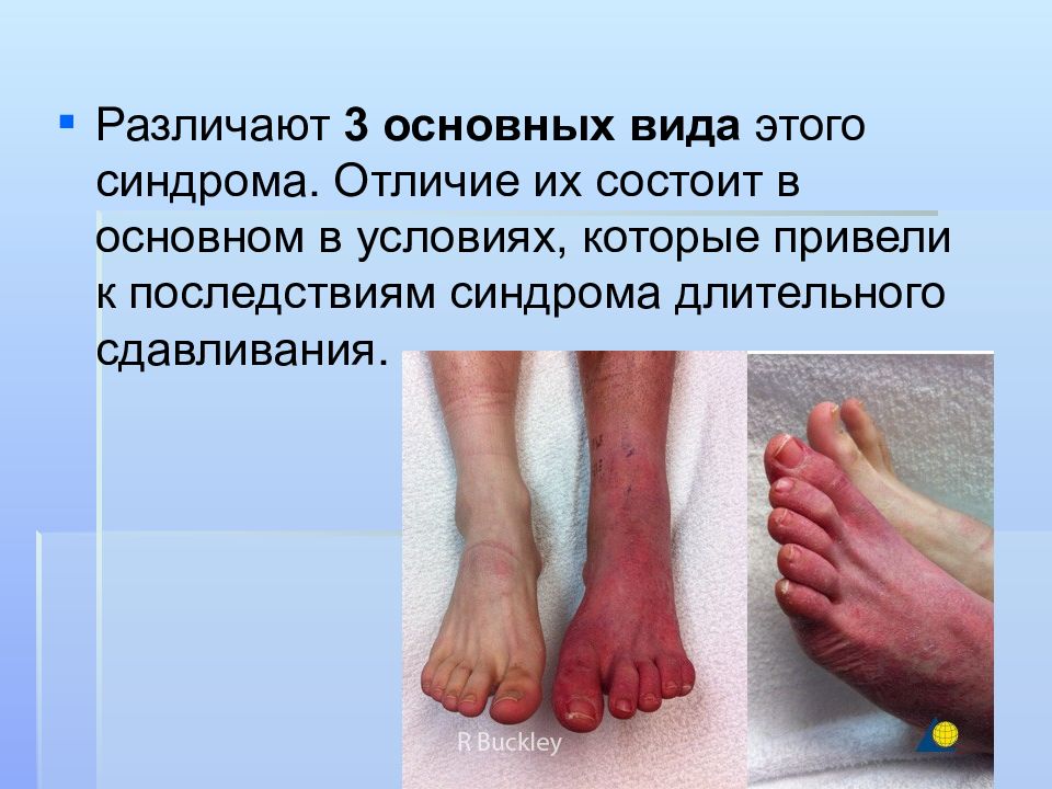 Различают 3 основных вида этого синдрома. Отличие их состоит в основном в условиях, которые привели к последствиям синдрома длительного сдавливания.