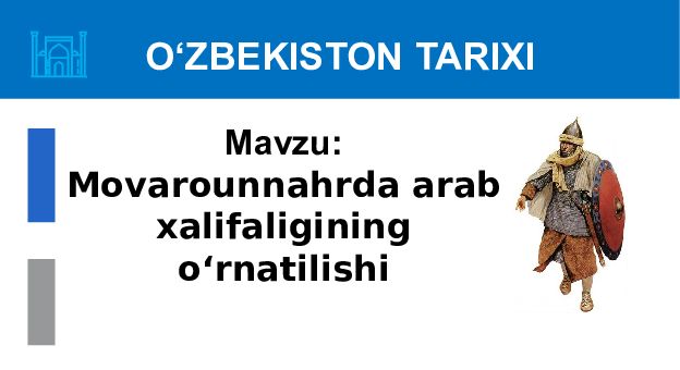 O‘ZBEKISTON TARIXI Mavzu : Movarounnahrda arab xalifaligining o‘rnatilishi