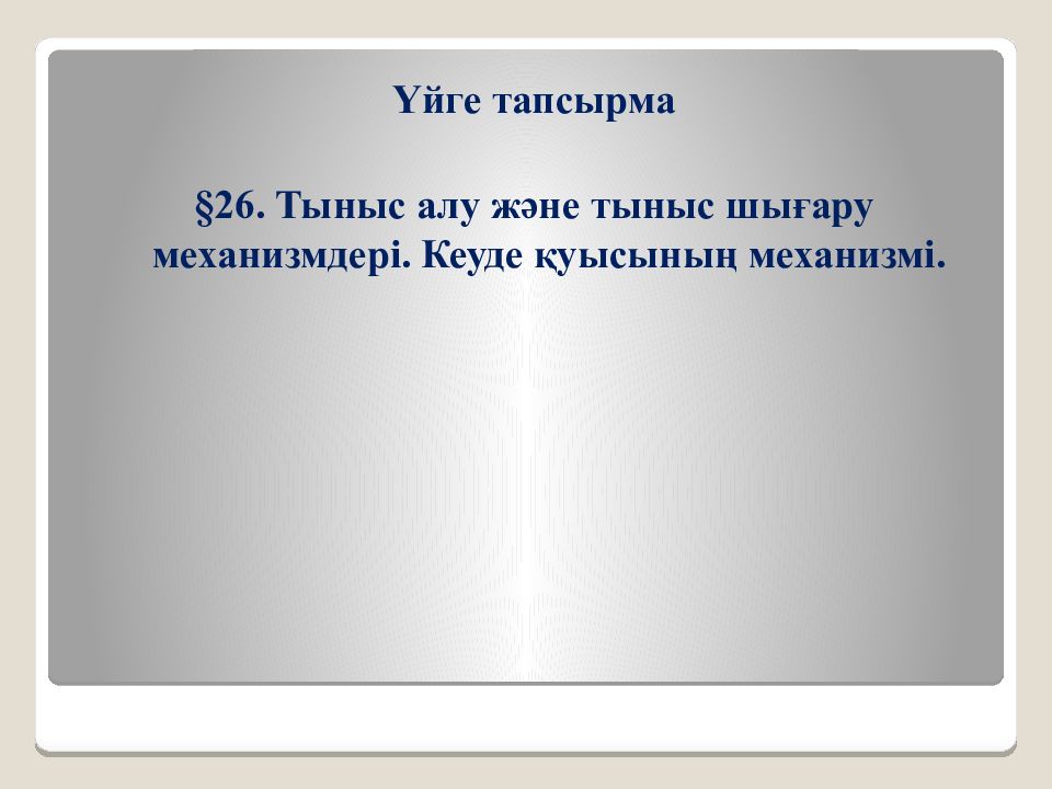 Үйге тапсырма §26. Тыныс алу және тыныс шығару механизмдері. Кеуде қуысының механизмі.