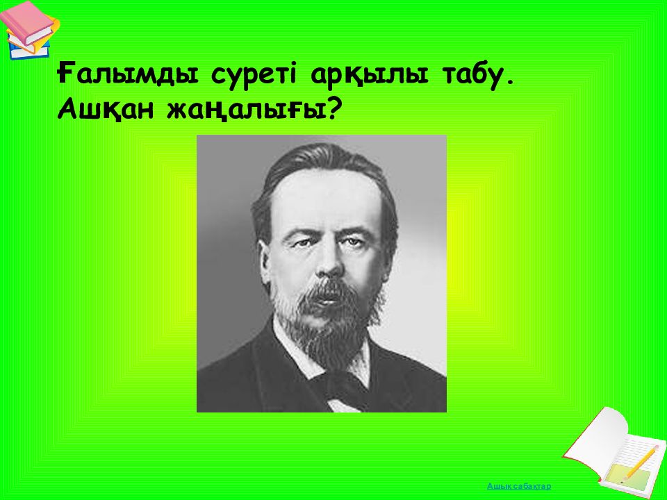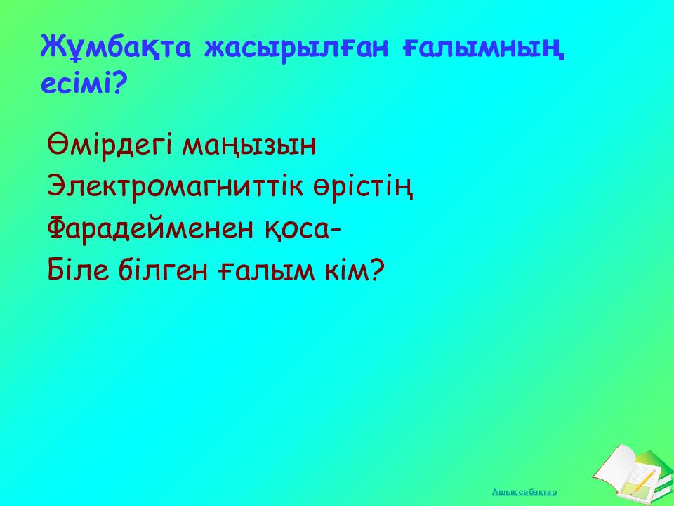 Слайд 16: Жұмбақта жасырылған ғалымның есімі?