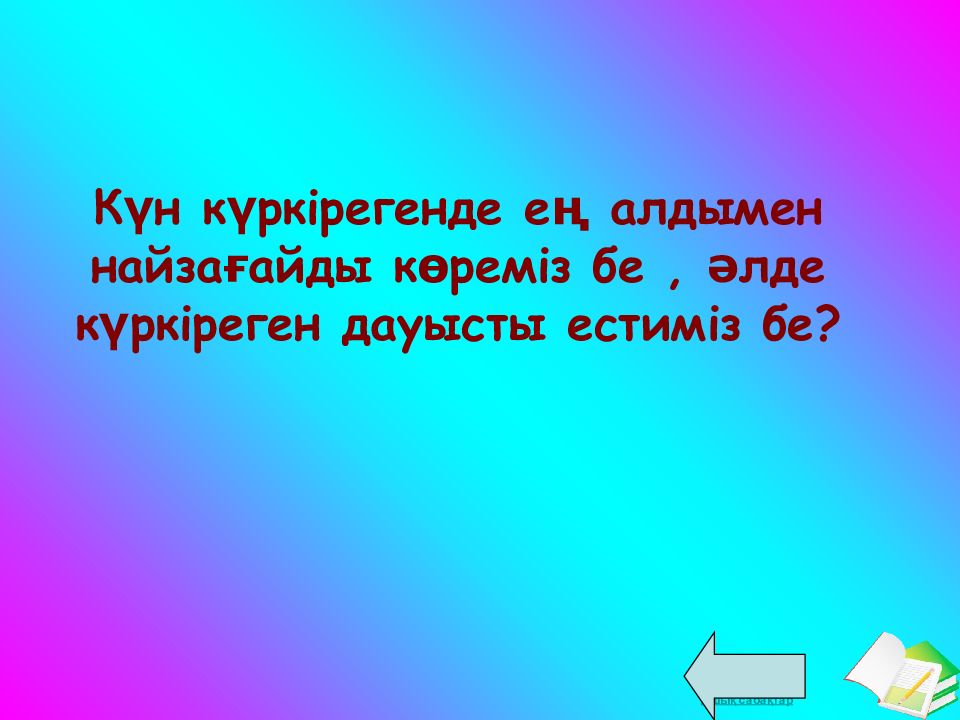 Слайд 26: Күн күркірегенде ең алдымен найзағайды көреміз бе, әлде күркіреген дауысты естиміз бе?