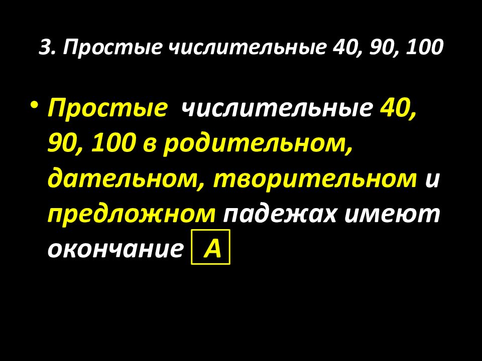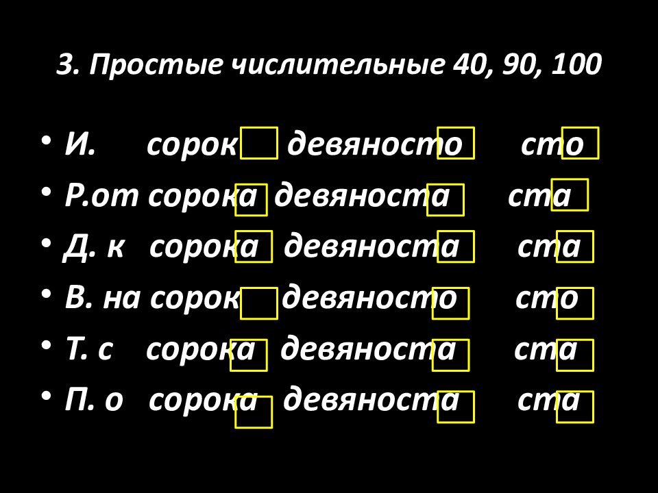 Слайд 7: 3. Простые числительные 40, 90, 100