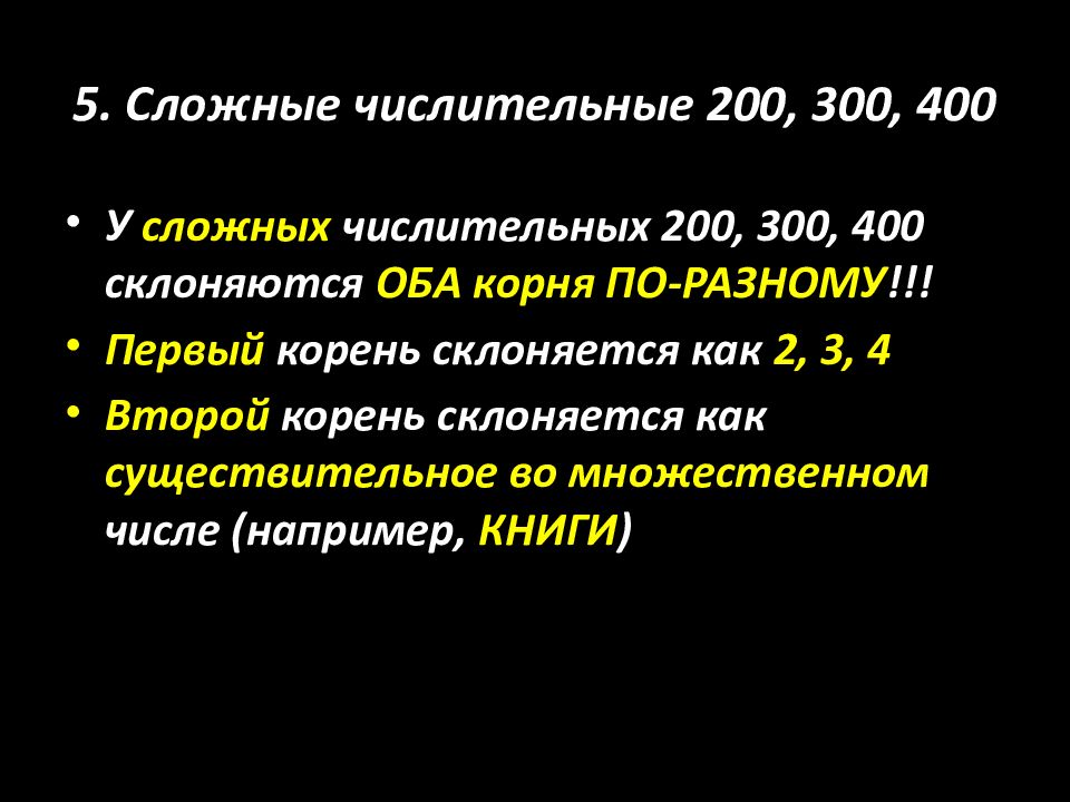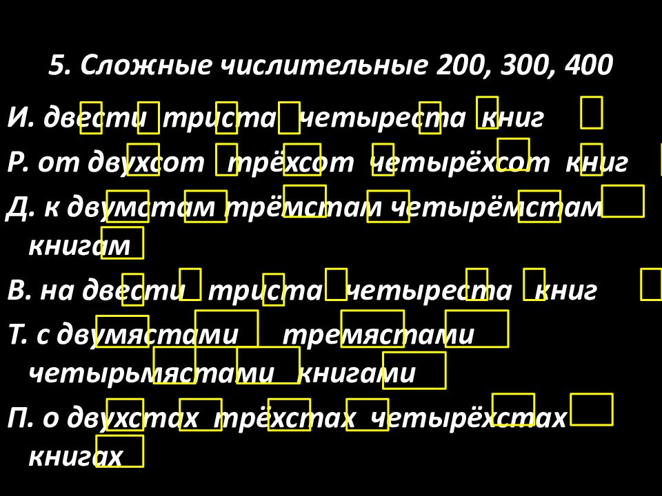 Слайд 11: 5. Сложные числительные 200, 300, 400