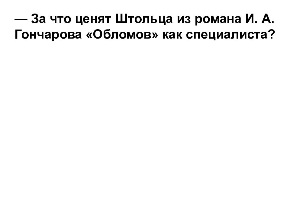 — За что ценят Штольца из романа И. А. Гончарова «Обломов» как специалиста?