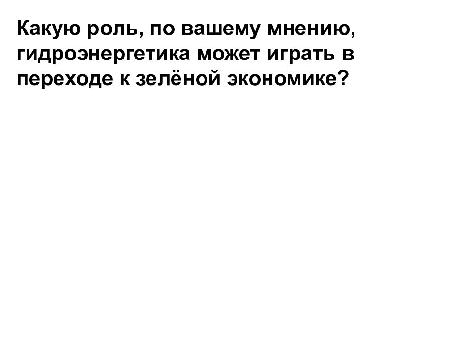Какую роль, по вашему мнению, гидроэнергетика может играть в переходе к зелёной экономике?