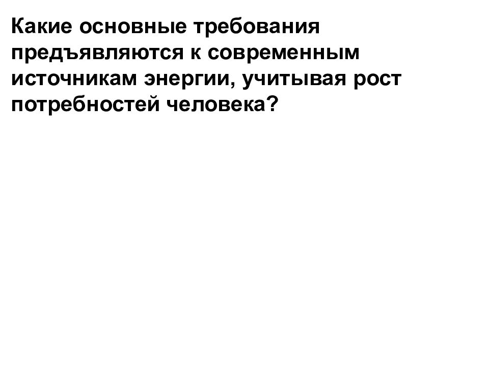 Какие основные требования предъявляются к современным источникам энергии, учитывая рост потребностей человека?
