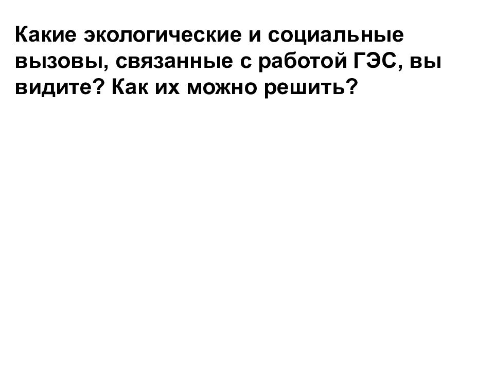 Какие экологические и социальные вызовы, связанные с работой ГЭС, вы видите? Как их можно решить?