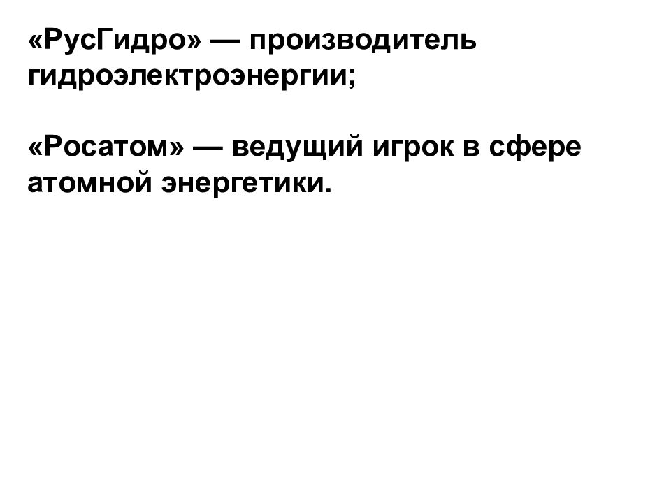 «РусГидро» — производитель гидроэлектроэнергии; «Росатом» — ведущий игрок в сфере атомной энергетики.