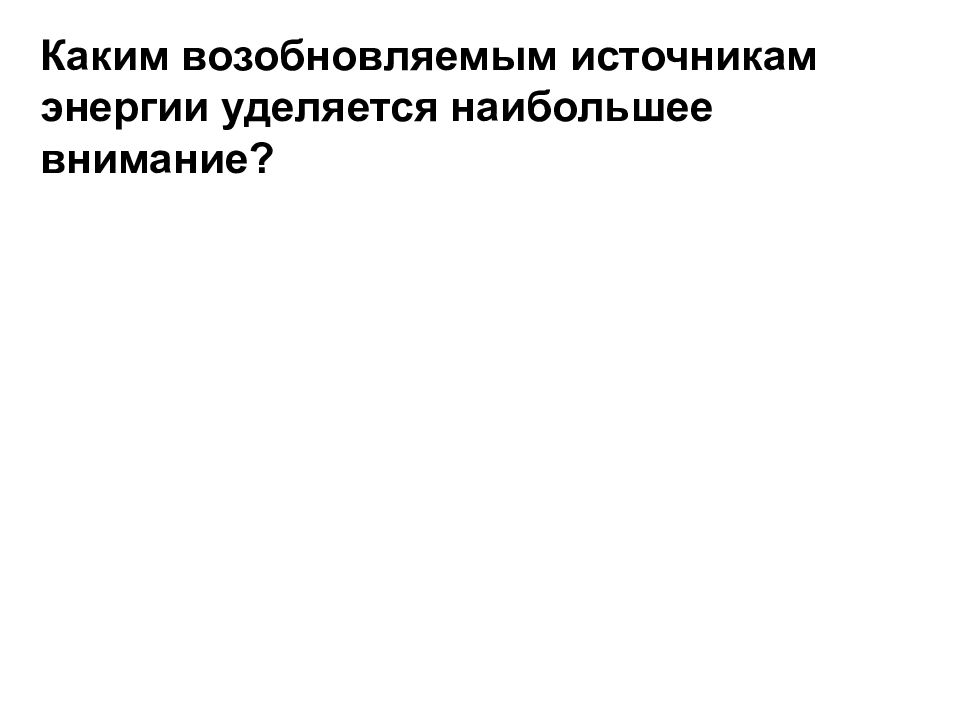 Наибольшее внимание уделяется возобновляемым источникам энергии, таким как энергия солнца, воды, ветра, тепла Земли.