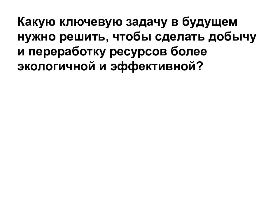 Какую ключевую задачу в будущем нужно решить, чтобы сделать добычу и переработку ресурсов более экологичной и эффективной?