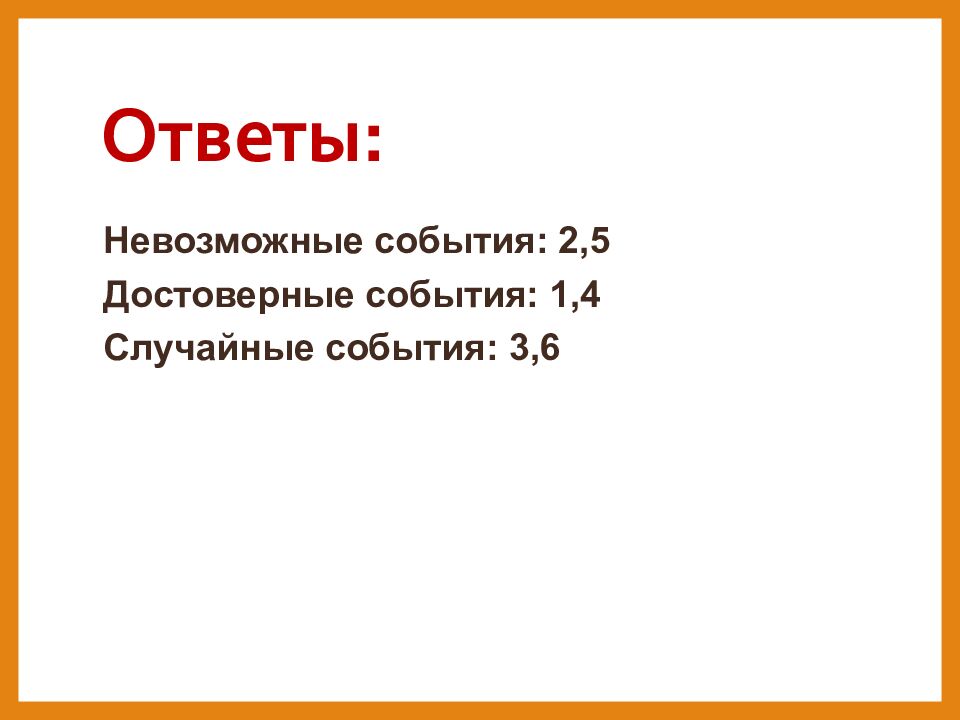 Невозможные события: 2,5 Достоверные события: 1,4 Случайные события: 3,6