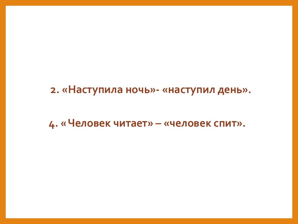 2. «Наступила ночь»- «наступил день». 4. « Человек читает» – «человек спит».