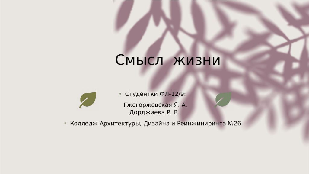 Студентки ФЛ-12/9: Гжегоржевская Я. А. Дорджиева Р. В. Колледж Архитектуры, Дизайна и Реинжиниринга №26