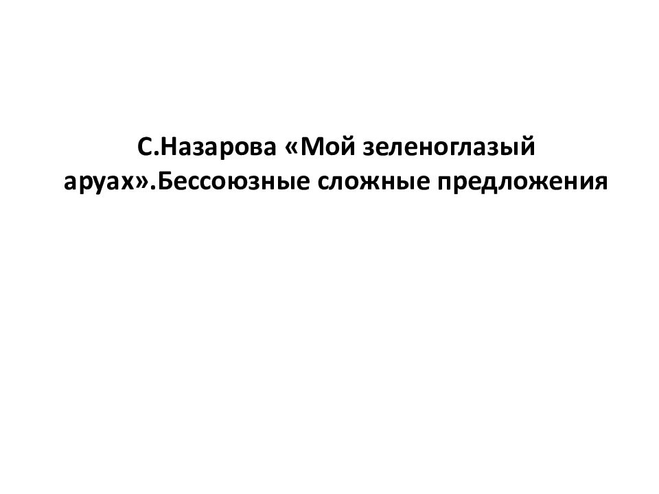 Первый слайд презентации: С.Назарова «Мой зеленоглазый аруах ».Бессоюзные сложные предложения