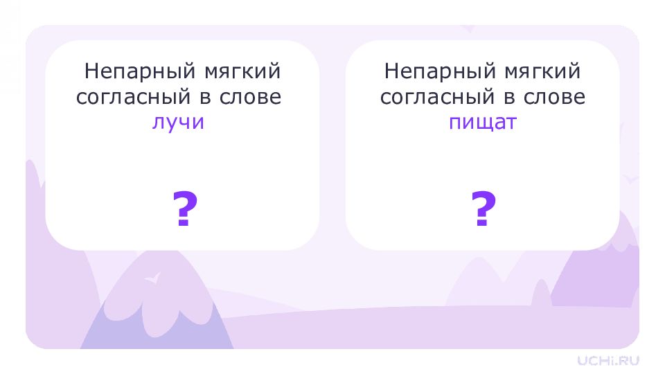 Непарный мягкий согласный в слове лучи Непарный мягкий согласный в слове пищат ? ?