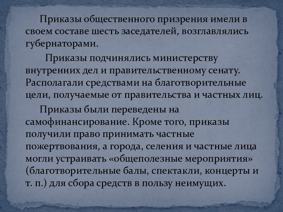 Слайд 10: Приказы общественного призрения