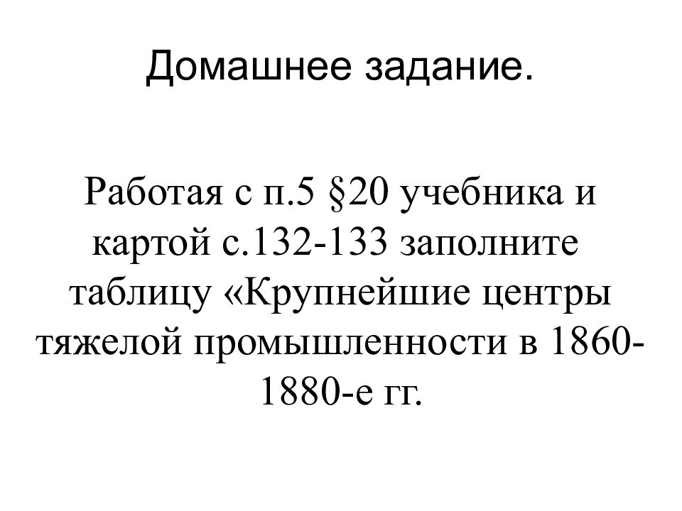 Работая с п.5 §20 учебника и картой с.132-133 заполните таблицу «Крупнейшие центры тяжелой промышленности в 1860-1880-е гг.