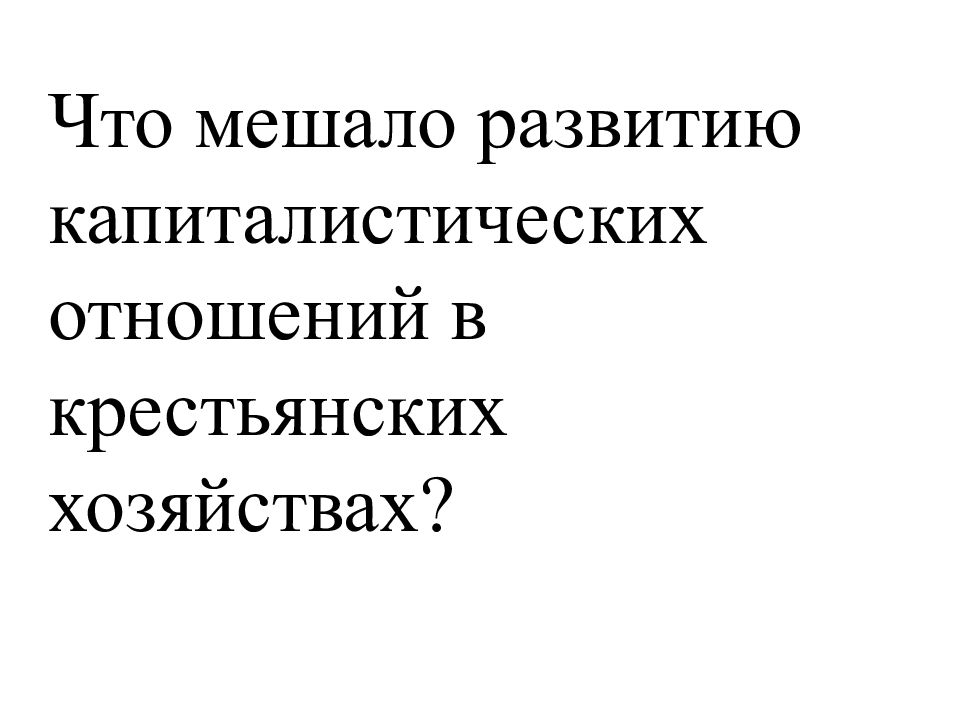 Что мешало развитию капиталистических отношений в крестьянских хозяйствах?
