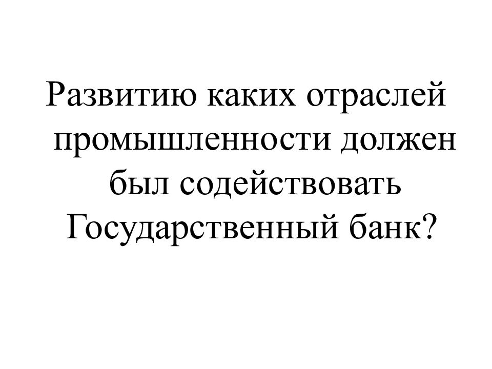 Развитию каких отраслей промышленности должен был содействовать Государственный банк?