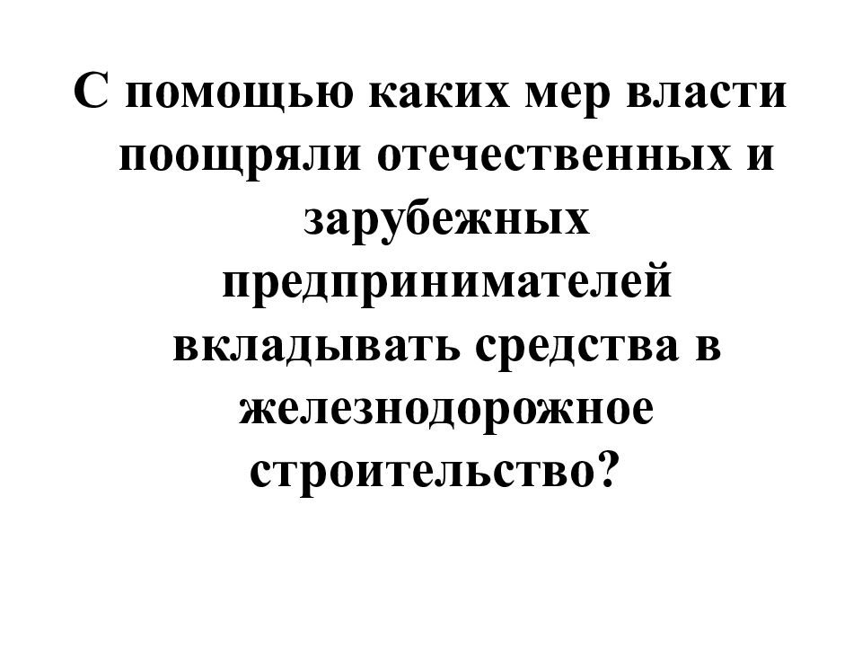 С помощью каких мер власти поощряли отечественных и зарубежных предпринимателей вкладывать средства в железнодорожное строительство?