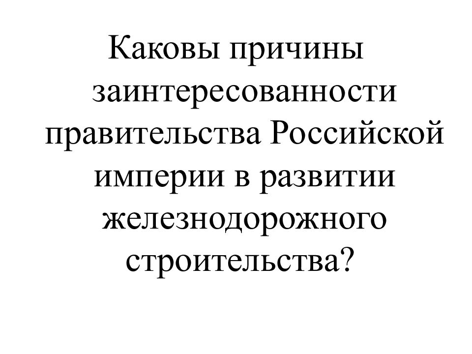 Каковы причины заинтересованности правительства Российской империи в развитии железнодорожного строительства?