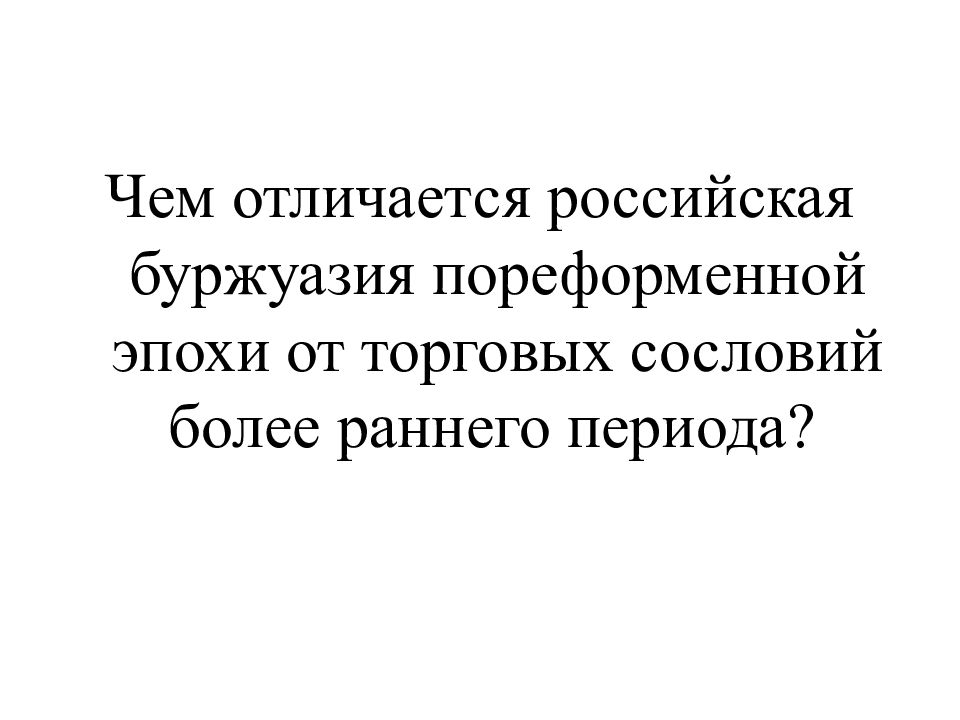 Чем отличается российская буржуазия пореформенной эпохи от торговых сословий более раннего периода?