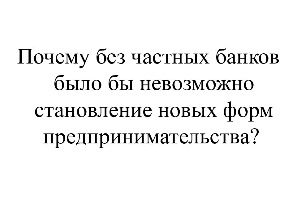 Почему без частных банков было бы невозможно становление новых форм предпринимательства?