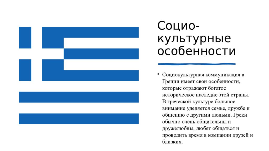 Первый слайд презентации: Социокультурная коммуникация в Греции