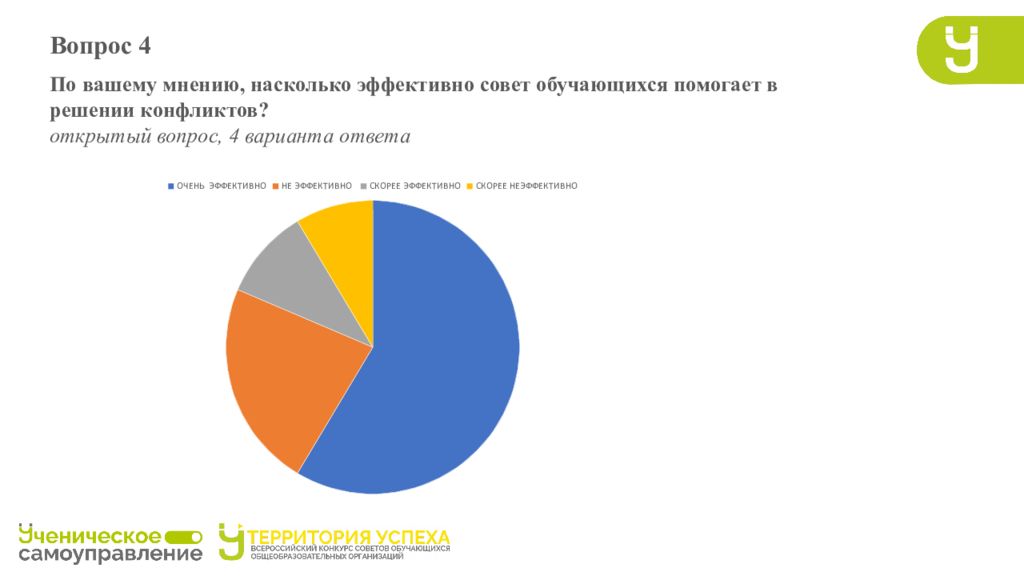 По вашему мнению, насколько эффективно совет обучающихся помогает в решении конфликтов ? открытый вопрос, 4 варианта ответа Вопрос 4