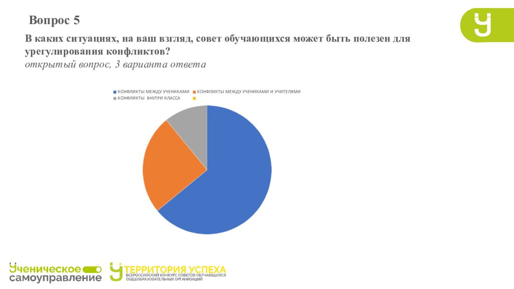 Вопрос 5 В каких ситуациях, на ваш взгляд, совет обучающихся может быть полезен для урегулирования конфликтов ? открытый вопрос, 3 варианта ответа