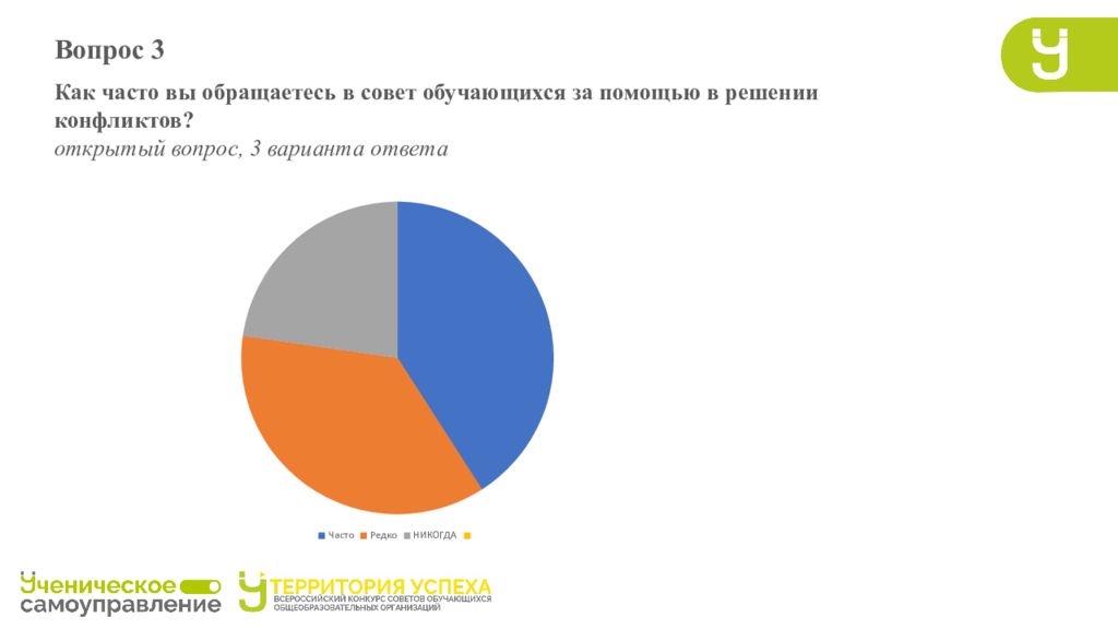 Как часто вы обращаетесь в совет обучающихся за помощью в решении конфликтов ? открытый вопрос, 3 варианта ответа Вопрос 3