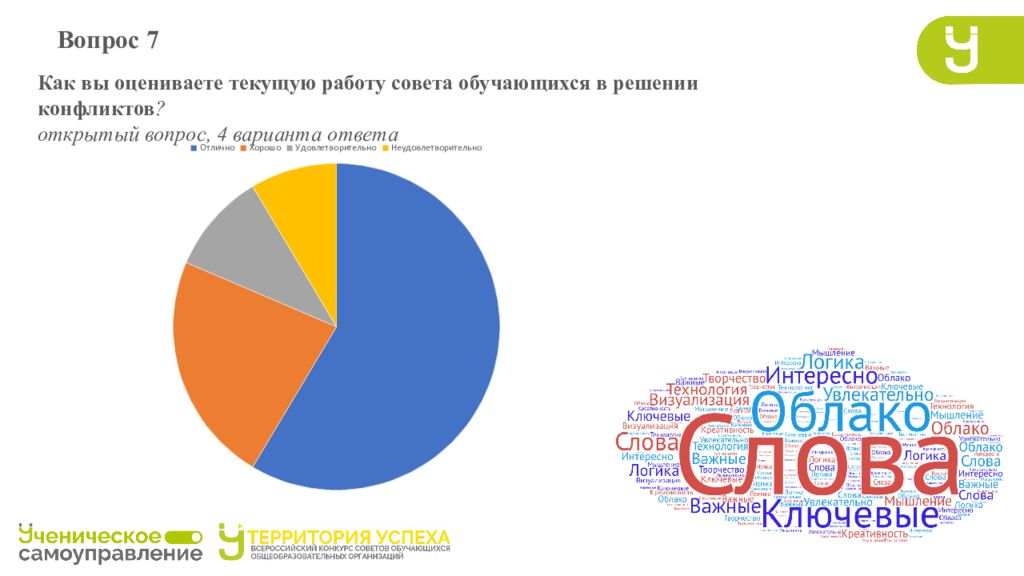 Как вы оцениваете текущую работу совета обучающихся в решении конфликтов ? открытый вопрос, 4 варианта ответа Вопрос 7