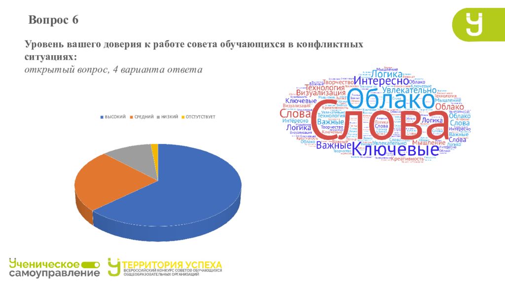 Уровень вашего доверия к работе совета обучающихся в конфликтных ситуациях : открытый вопрос, 4 варианта ответа Вопрос 6