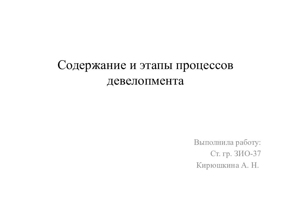 Первый слайд презентации: Сод е ржание и этапы процессов девелопмента