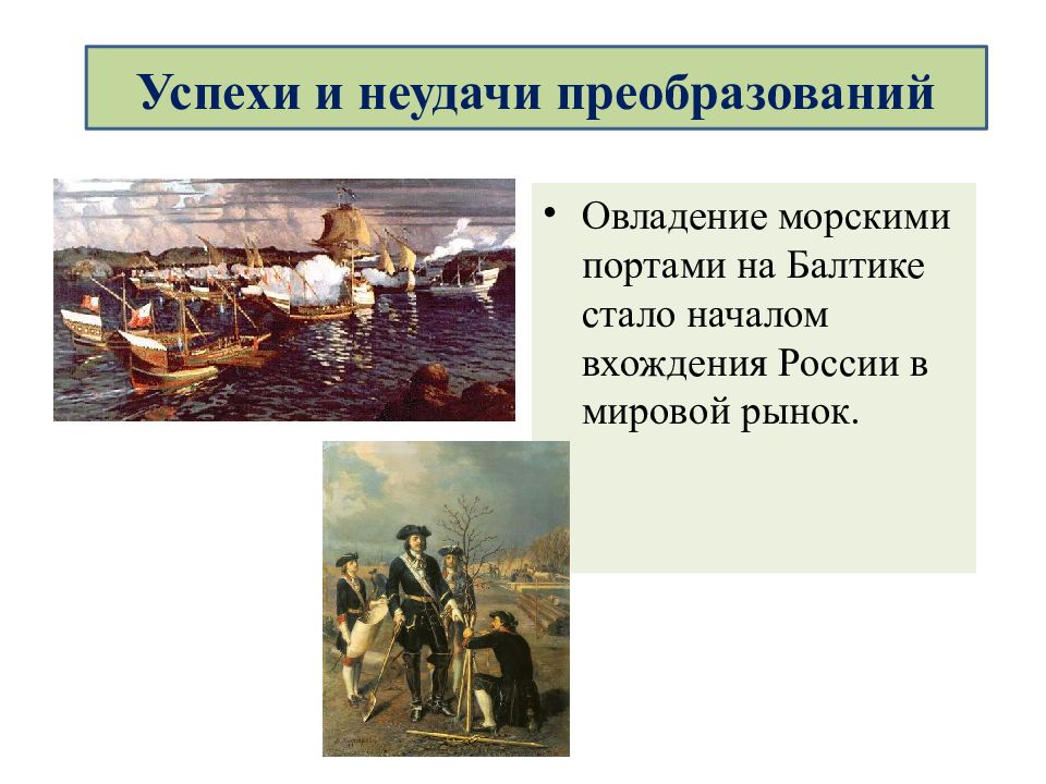 Овладение морскими портами на Балтике стало началом вхождения России в мировой рынок. Успехи и неудачи преобразований