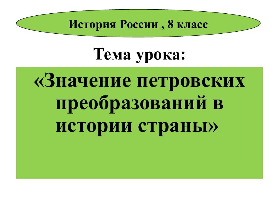 «Значение петровских преобразований в истории страны» История России, 8 класс