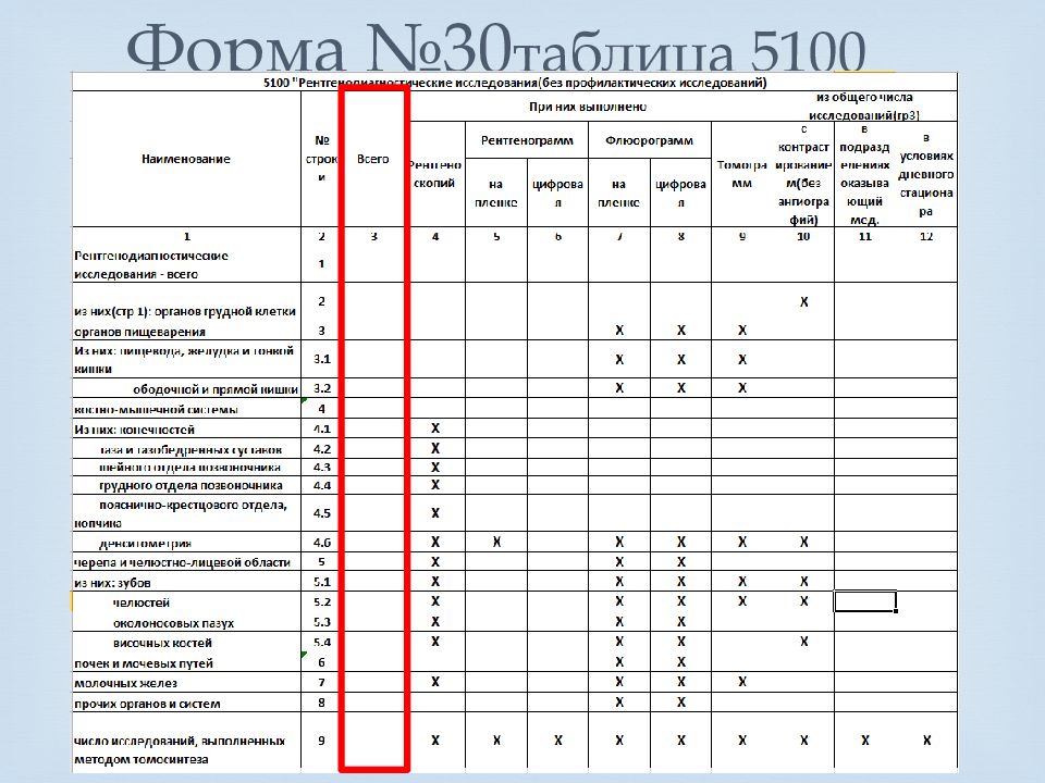 Слайд 12: Форма № 30, таблица 5100 «вертикальная проверка»