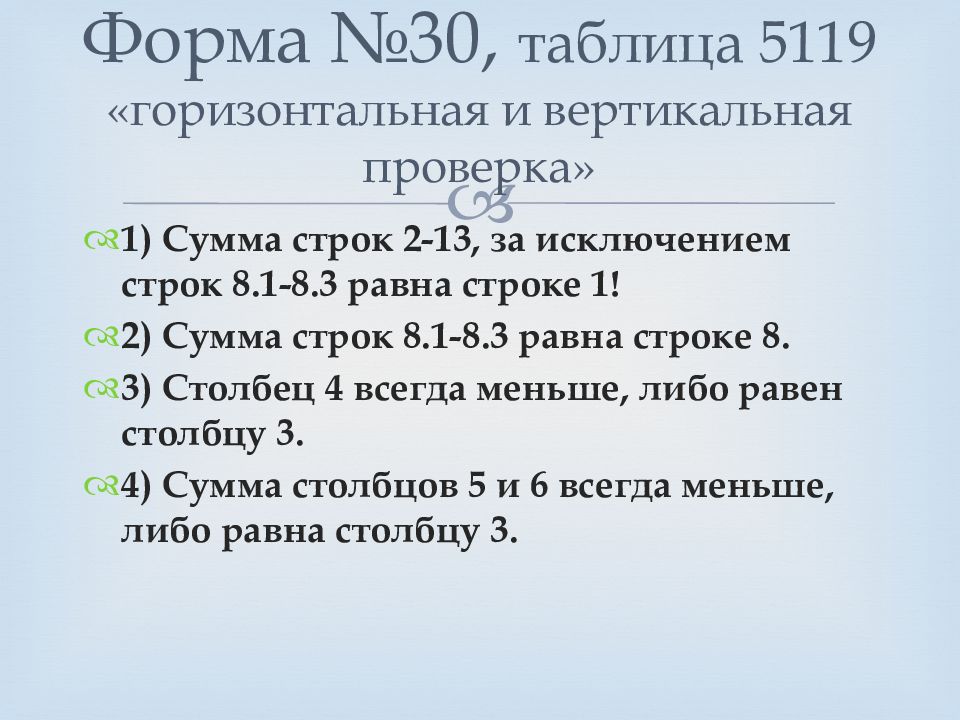 Слайд 30: Форма № 30, таблица 5119 «горизонтальная и вертикальная проверка»