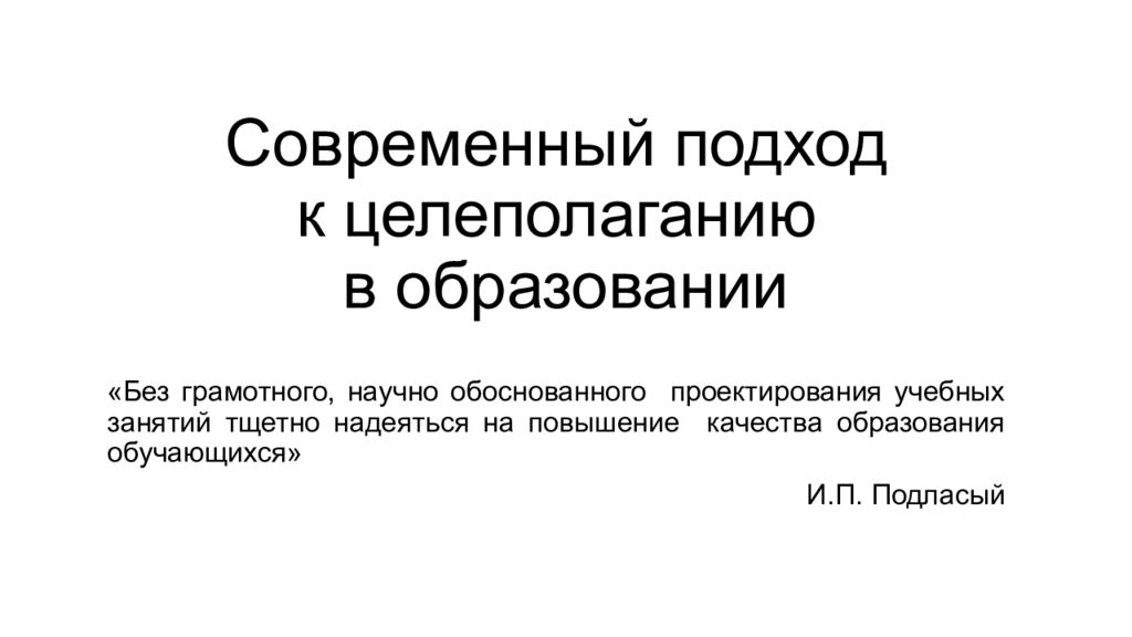 «Без грамотного, научно обоснованного проектирования учебных занятий тщетно надеяться на повышение качества образования обучающихся» И.П. Подласый