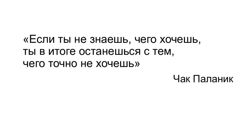 «Если ты не знаешь, чего хочешь, ты в итоге останешься с тем, чего точно не хочешь» Чак Паланик