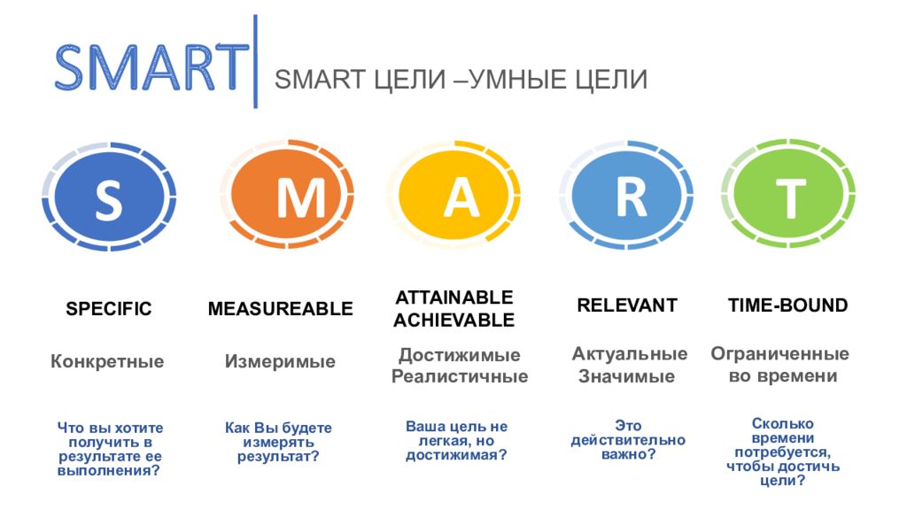 Слайд 5: SMART SMART ЦЕЛИ –УМНЫЕ ЦЕЛИ