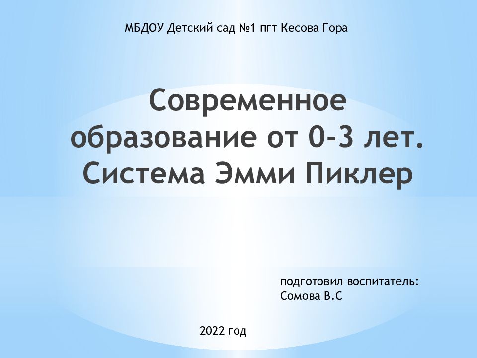 Первый слайд презентации: Современное образование от 0-3 лет. Система Эмми Пиклер