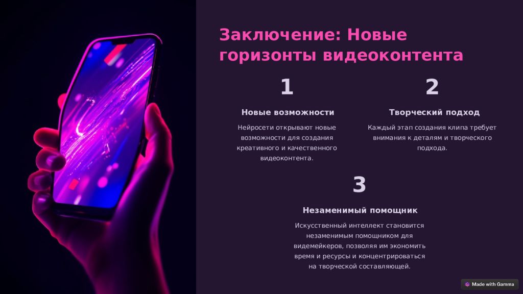 Последний слайд презентации: Создание клипа с использованием нейросетей: от идеи до реализации Создание