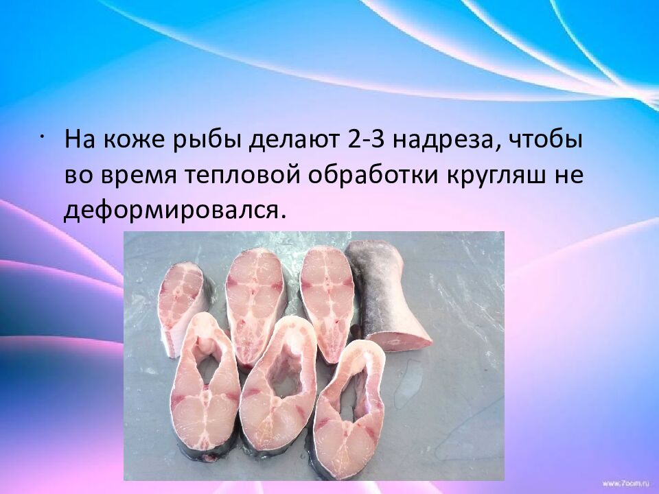 На коже рыбы делают 2-3 надреза, чтобы во время тепловой обработки кругляш не деформировался.