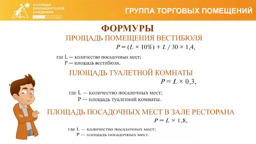 ГРУППА ТОРГОВЫХ ПОМЕЩЕНИЙ ФОРМУРЫ ПРОЩАДЬ ПОМЕЩЕНИЯ ВЕСТИБЮЛЯ ПЛОЩАДЬ ТУАЛЕТНОЙ КОМНАТЫ ПЛОЩАДЬ ПОСАДОЧНЫХ МЕСТ В ЗАЛЕ РЕСТОРАНА