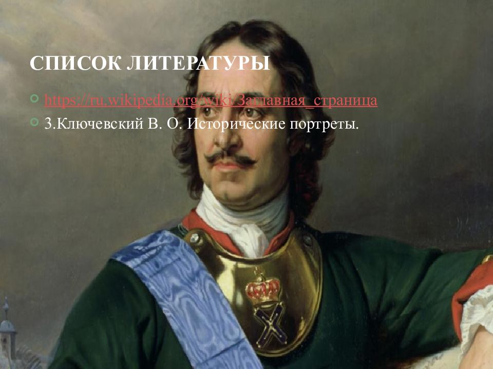 https://ru.wikipedia.org/wiki/ Заглавная_страница 3.Ключевский В. О. Исторические портреты.