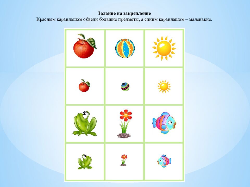 Первый слайд презентации: Сравнение предметов. «Большой и маленький»